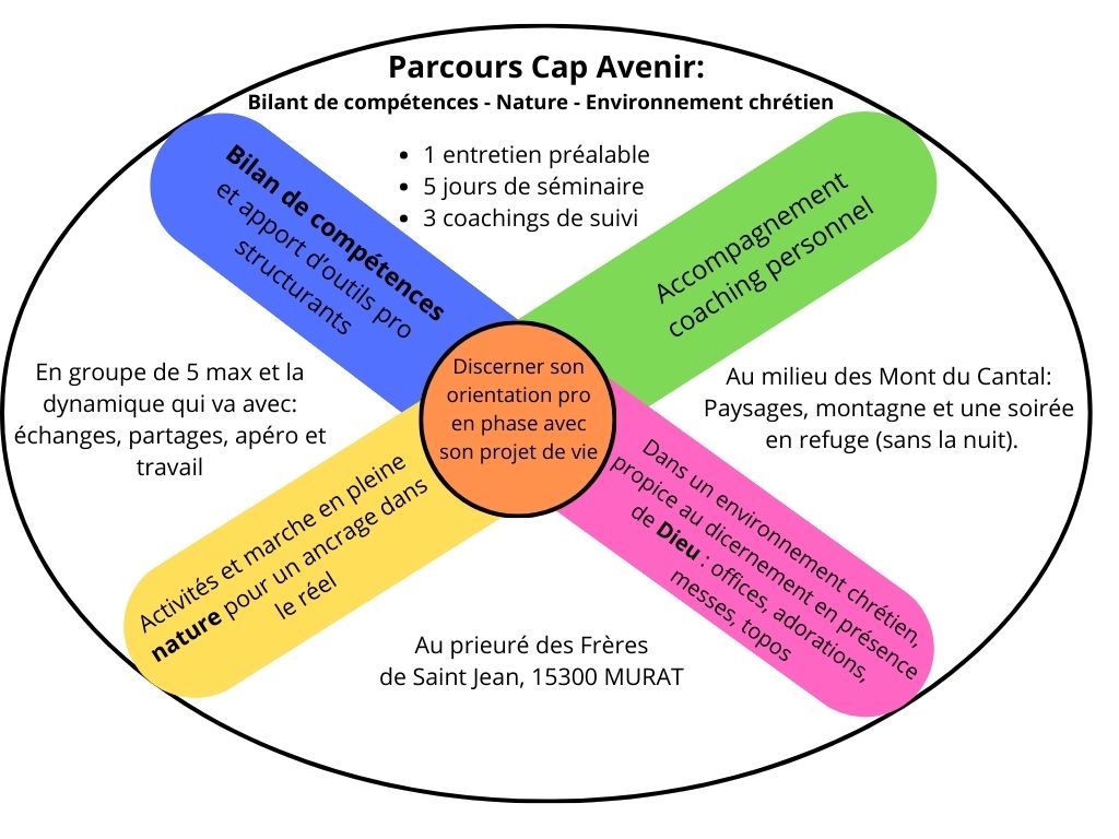 Un temps pour discerner son orientation professionnelle en phase avec son projet de vie, incluant un bilan de compétences.